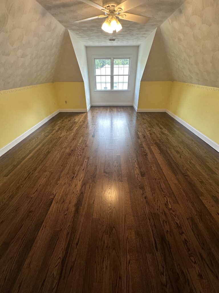 Once the subfloor was ready, Red Oak hardwood flooring was professionally installed with careful attention to layout, spacing, and alignment to create a seamless and durable finished surface. Red Oak is a popular hardwood choice due to its strength, timeless appearance, and ability to complement both traditional and modern interiors.